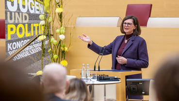 „Ich sehe eine junge Generation, die sich nicht mit einfachen Antworten abfinden will, sonst wären sie nicht da“, betonte die Landtagspräsidentin. Tatsächlich waren fast alle im Saal kommunalpolitisch aktiv, wie eine Abstimmung per Handzeichen ergab. „Sie wollen also nicht nur über Politik reden, sondern es besser machen“, rief sie den Anwesenden zu. Dazu brauche es Unterstützung. Etwa: Wo kann ich mich einbringen? Wie bilde ich Netzwerke? Wie binde ich Medien mit ein? Oder wie gehe ich mit Hass und Hetze um?